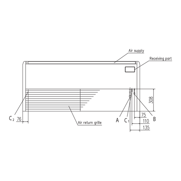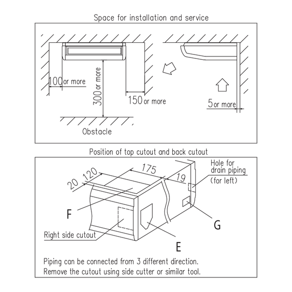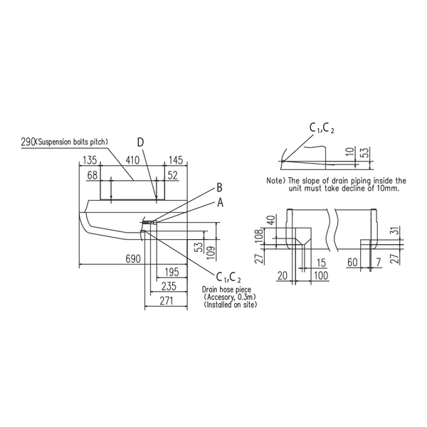 C1,2. Drain piping VP20 (I.D.20, O.D.26)
