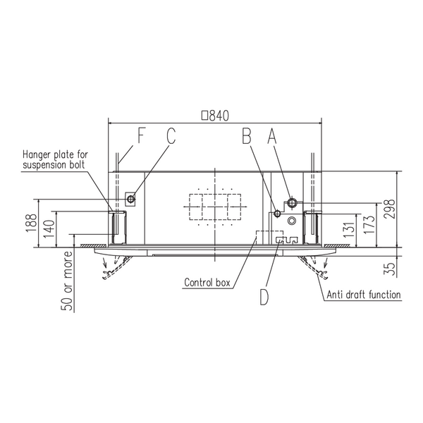 F. Suspension bolts M10 or M8