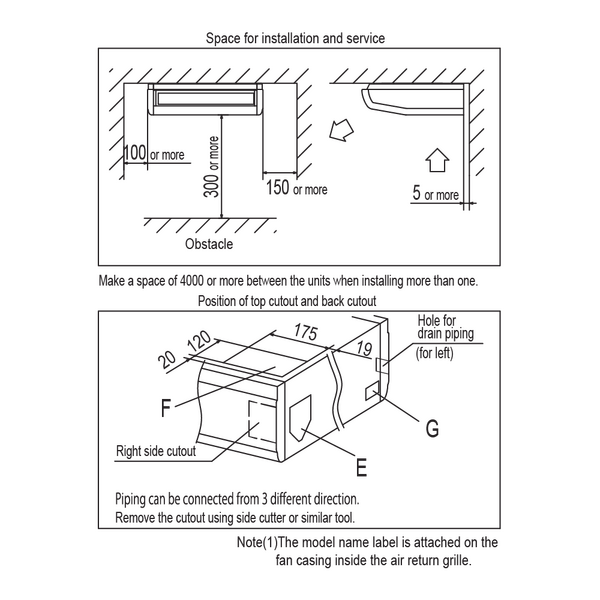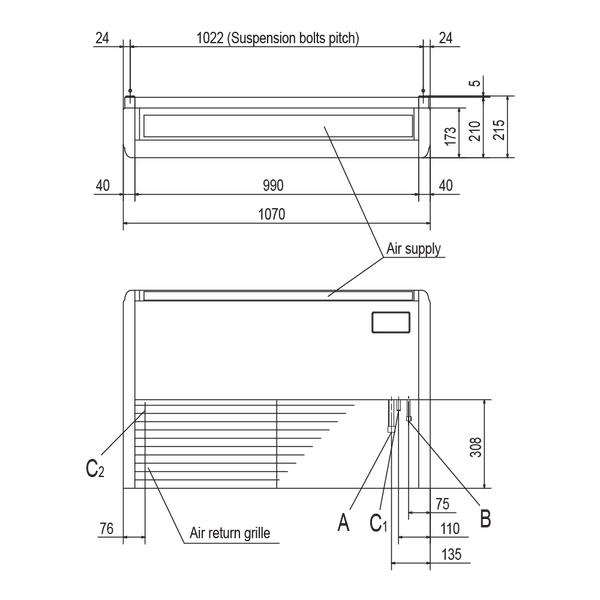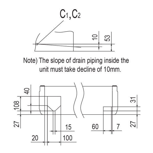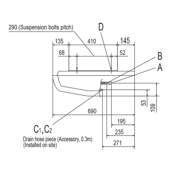 | C1,2. Drain piping | VP20(I.D.20, O.D.26) |