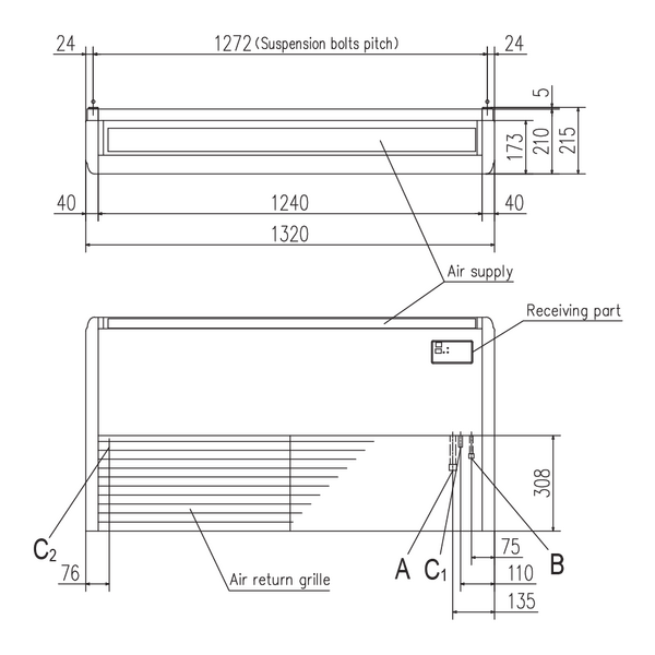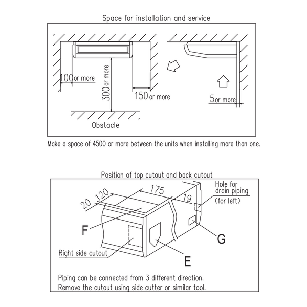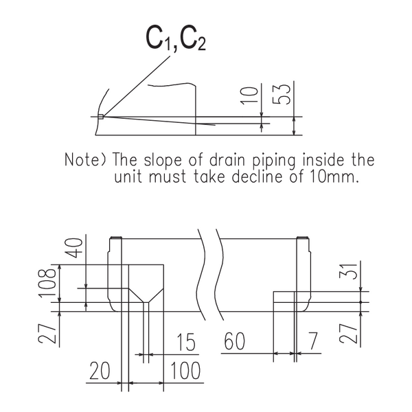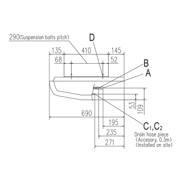 | C1,2. Drain piping | VP20(I.D.20, O.D.26) |
