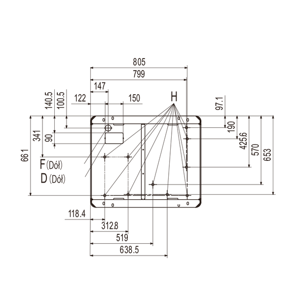 | D. Knockout hole for pipes | 175 x 130 (Front), 150 x 90 (Bottom) |