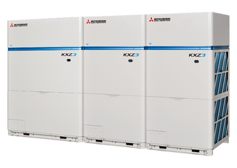 The range of outdoor units for the two-pipe VRF Hi-COP air conditioning system from Mitsubishi Heavy Industries, featuring variable refrigerant flow. The units are available in combinations of two or three modules, with cooling capacities ranging from 44.8 kW to 135.0 kW, and are designed to operate with R32 refrigerant gas. They provide cooling or heating for a variety of commercial and industrial buildings. A maximum total piping length of up to 1,000 m, increased height differences, and capacity indices of up to 150% provide flexibility in the design of VRF air-conditioning systems. The KXZ3 Hi-COP system, in combined configurations, allows the connection of up to 80 indoor units.