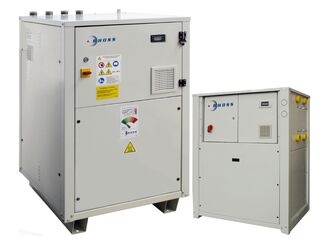 The range of water-cooled reversible heat pumps and chillers from Rhoss Nibe Group. The series features scroll hermetic compressors operating with R410A refrigerant gas, with cooling capacities ranging from 14.1 to 42.3 kW and heating capacities from 17.4 to 45.2 kW. The units are certified by Eurovent.