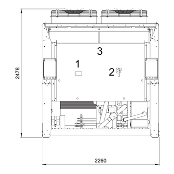 A2 - Heat recovery mode. The unit absorbs heat from the Main Heat Exchanger operating as an evaporator and transfers it to the Heat Recovery Exchanger operating as a condenser.