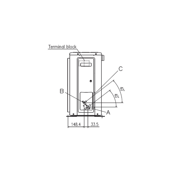| A | Service valve connection (gas side) | ⌀ 12,7 (1/2") |