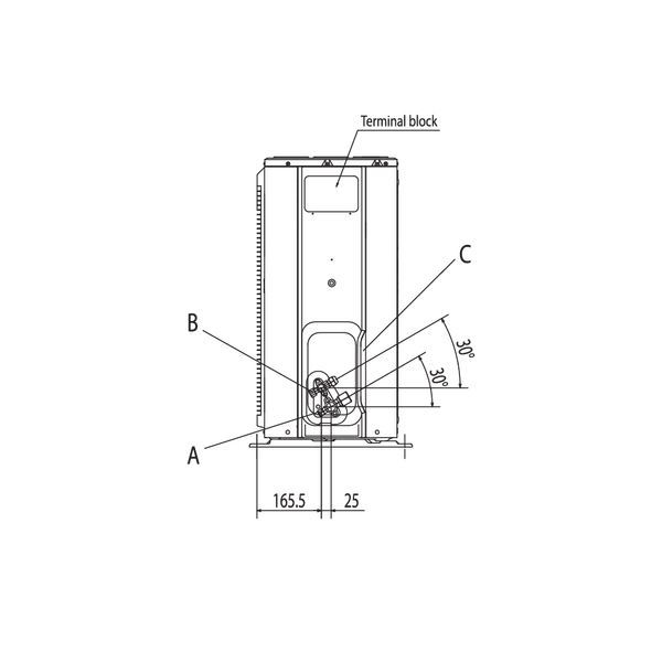 | A | Service valve connection (gas side) | ⌀ 15,88 (5/8") |