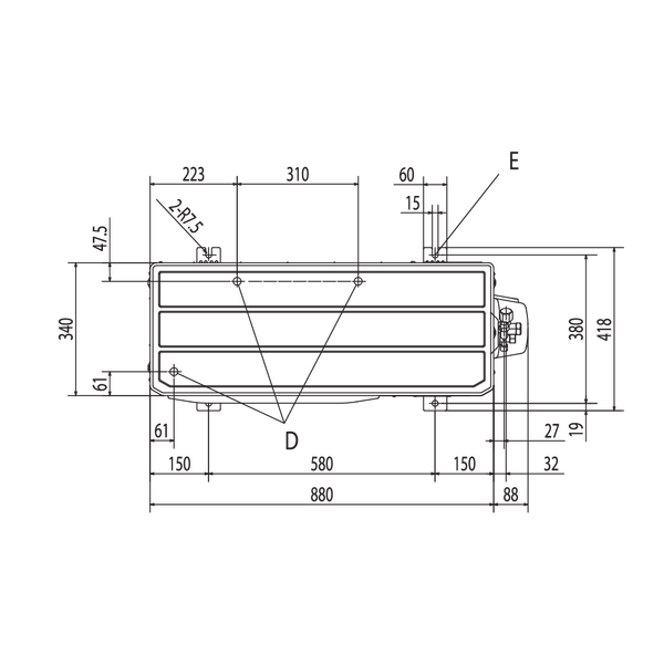 | D | Drain discharge hole | ⌀ 20 x 3 |
