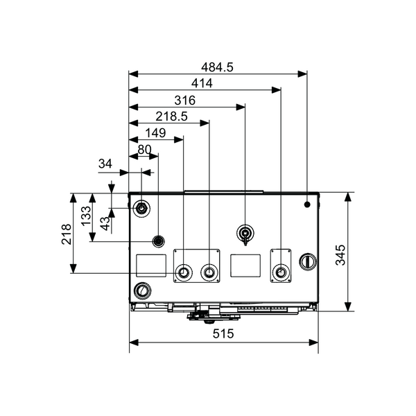 | F | Cable draw-out hole | ⌀ 30 (front), ⌀ 45 (side), ⌀ 50 (back) |
