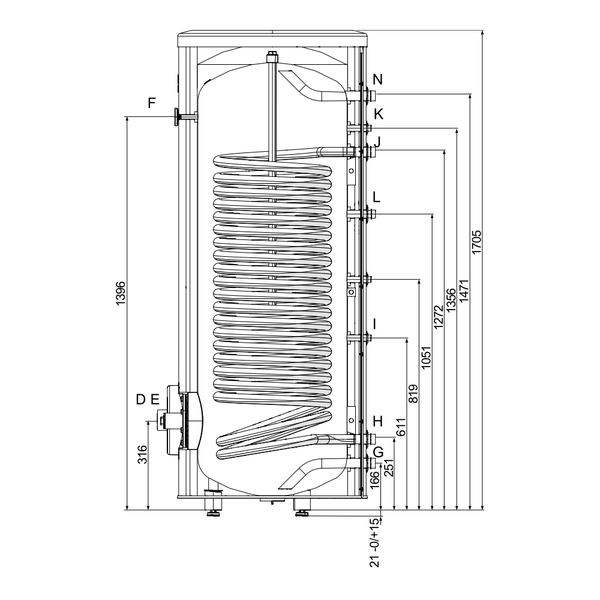| E | Heating unit connection | [inch] | 1½ (female) |