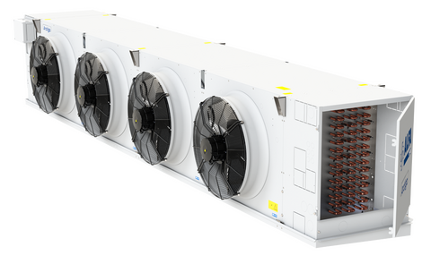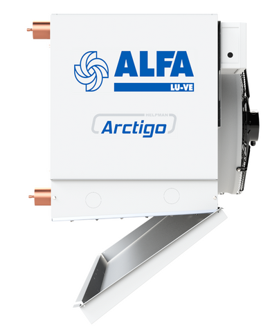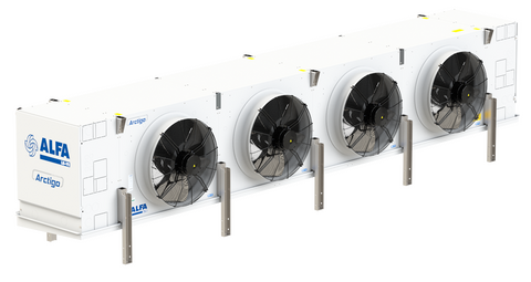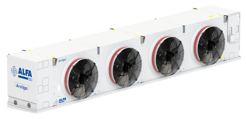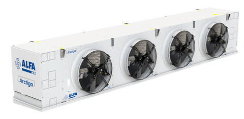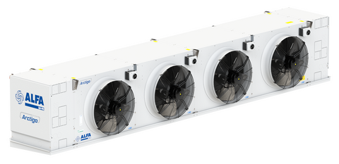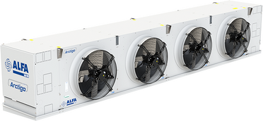 The range of Alfa LU-VE Arctigo ISDE industrial air coolers with one-way air flow, designed for applications in demanding cooling and freezing processes, in medium and large rooms. Cubic coolers adapted to work with refrigerants from HFC group, in the nominal capacity range from 2,28 to 238,79 kW. They are equipped with AC or energy-saving EC fans with a diameter from 400 to 910 mm. The range of exchangers based on Helpman solutions, to ensure freshness of stored products at temperatures from - 40°C to + 10°C. Devices are certified by Eurovent.