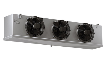 The ECO Modine CGC range of commercial cubic air coolers with single air discharge is intended for use in medium-sized cold and freezer rooms. The CGC series is designed for operation with the natural refrigerant CO₂, offering nominal cooling capacities from 1.09 kW to 23.85 kW. The cubic air coolers are equipped with AC axial fans with diameters of 250 mm, 315 mm, and 350 mm. The maximum allowable working pressure is 80 bar.