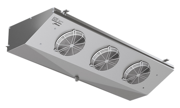 The ECO Modine CGS range of ceiling-mounted air coolers with single air discharge is dedicated to cold rooms with low ceilings. The special shape of the casing allows for maximum utilization of storage space. The CGS series is designed for operation with the natural refrigerant CO₂, offering nominal cooling capacities from 0.30 kW to 7.82 kW. Commercial CGS air coolers are equipped as standard with AC fans with diameters of 200 mm, 250 mm, and 315 mm, featuring a maximum operating temperature of up to +60°C (for optional EC fans; ø300 mm). The maximum allowable working pressure is 80 bar.