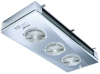 Flat celling coolers are equipped with AC axial fans with diameter 315 and 350 mm. Maximum operating temperature: + 60°C (optional EC fans).