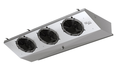 The ECO Modine GSE range of ceiling-mounted air coolers with single air discharge is dedicated to the storage of fresh or frozen products. This commercial series has been optimized for installation in cold storage facilities where ceiling height is limited. The GSE series includes 8 models with nominal cooling capacities from 2.00 kW to 8.20 kW, equipped with AC axial fans with a diameter of 315 mm and IP 44 protection grade. The operating temperature for air coolers in this series is from -25°C to +60°C (for optional EC fans).