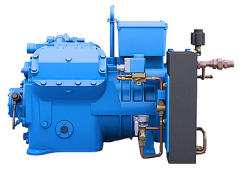 Series of semi-hermetic two-stage Frascold compressors, optimized for applications in low evaporation temperatures, deep freezing, and cryotherapy. Four-cylinder compressors, adapted for use with refrigerants: R448A, R449A, R404A, R22, over a wide temperature range from -70°C to -25°C. Displacement range of 29.40 m3/h (HP) and 41.89 m3/h (LP). Reciprocating compressors, certified by Asercom, are characterized by high efficiency, which leads to cost-saving benefits, robust construction, quiet operation, and compact design. An optional list of accessories increases the versatility of their applications. All models can be equipped with an innovative subcooler system.