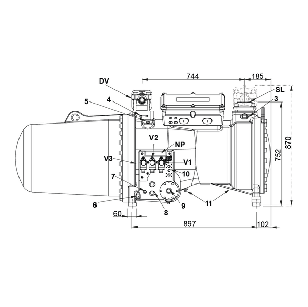 | 7 | Oil level regulator connection | 3/4" NPT |