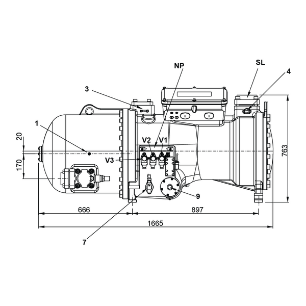 | 7 | Oil level regulator connection | 3/4" NPT |