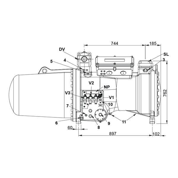 7 Oil level regulator connection 3/4" NPT