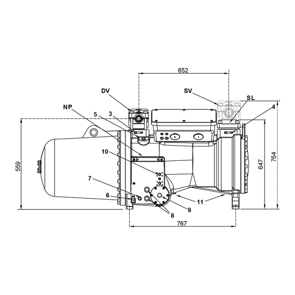 4 Low pressure connection 1/4" SAE x 1/4" SAE