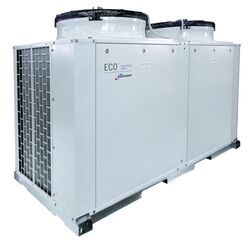 The range of air-cooled ECO Modine PCV industrial condensers was designed for applications in the air-conditioning and refrigeration sectors. 60 models in the nominal capacity range from 8.30 to 53.80 kW are equipped with an additional chamber for the compressors and automation installation, high-efficiency L-shaped heat exchangers and AC axial fans with diameters: 450, 500, 630 and 710 mm. Fin spacing for the entire series is 2.1 mm. The devices can operate in the temperature range from -25 to +60°C with optional EC fans. Condensers designed to work with low GWP refrigerants, comply with the provisions of the F-GAS Directive. Condensers with a soundproof compressor compartment are designed to use in installations requiring low noise levels.