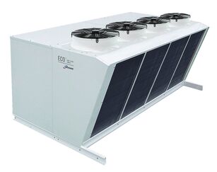 The range of air-cooled ECO Modine PKE industrial condensers was designed for applications in the air-conditioning and refrigeration sectors. 34 models in the nominal capacity range from 49.20 to 253.00 kW are equipped with an additional chamber for the compressors and automation installation and axial fans with diameter 630 mm. Fin spacing for the entire series is 2.1 mm. The devices can operate in the temperature range from up to +60°C with optional EC fans.