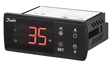 The range of multipurpose controllers Danfoss ERC, intended for low- and medium-temperature application in refrigeration systems with natural, electrical and gas defrost. The typical applications include showcases with the glass doors, commercial refrigerators and freezers, cold stores, heating appliances and other commercial applications. The range of ERC21x controllers only available as controllers or complete kits with NTC detectors. Controllers Danfoss ERC21X are equipped with the four buttons, a large display, simple and intuitive menu, installed applications for ease of use. The module includes energy saving functions such as smart fan control, day/night functions and defrost on request. 16A relay allows to connect directly to the high loads without intermediate relays.