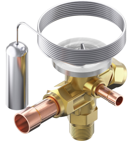 The series of Danfoss T2 / TE 2 thermostatic expansion valves provide efficient control of the injection of refrigerant liquid into evaporators in food retail refrigeration applications and air conditioning. These valves are compatible with various refrigerants, including R448A, R449A, R452A, R513A, R22, R407C, R134a, R404A, R507, R407F and R407A. They are available in angleway valves with solder x solder or solder x flare connections, featuring internal (T2) and external pressure equalization (TE2). They are supplied as part of a component program with separate thermostatic elements/valve bodies and exchangeable orifice assemblies, enabling easy storage, easy capacity matching, and better service.