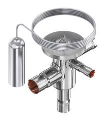 [read more]The Danfoss TU/TC series of thermostatic expansion valves made from stainless steel are designed to regulate the injection of refrigerant into evaporators in refrigeration and air conditioning systems. These valves are compatible with various refrigerants such as R134a, R290, R404A, R407A, R407C, R407F, R410A, R448A, R449A, R452A, R454C, R455A, R507, R513A, R1234yf, R1234ze, and R22 (depending on the model). They are available in angleway and straightway versions with both internal and external pressure equalization. These valves are known for their compact and lightweight design and are equipped with copper connectors made of stainless steel and copper, which enable quick soldering.