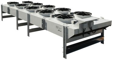 The range of ECO Modine KCE CO₂ industrial gas coolers is available in versions with horizontal or vertical air flow. The models with a nominal power ranging from 9.70 kW to 1516.00 kW are designed for use in air conditioning and cooling systems that operate on the natural refrigerant CO₂. Standard ECO gas coolers are equipped with AC axial fans with diameters of 500, 630, 710, 800, 910, and 1000 mm with a fin spacing of 2.1 mm for the entire series. Upon request, KCE CO₂ models can be equipped with special fin blocks and fan motors.
