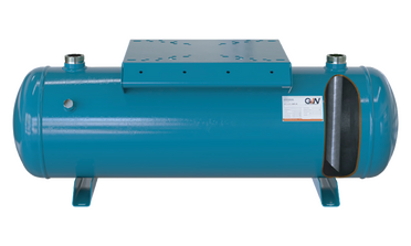 The range of GVN Horizontal Liquid Receivers (HC) with a baseplate for compressor mounting. Models are available in various dimensions and connection diameters, allowing for customization to fit any application. The refrigerant receivers are designed to work with condensing units using refrigerants from the HCFC, HFC groups, as well as R410A, R744 (CO2), R290 (propane), and R717 (ammonia). They are manufactured in compliance with the CE Directive 2014/68/EU [PED] and approved for operation at maximum working pressures of 33 and 45 bar. Volume range from 9 to 100 litres.