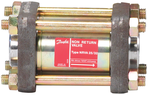 Danfoss check valves ensure proper flow direction and prevent refrigerant from condensing due to backflow from the warmer part of the system to the colder evaporator. They can be used in liquid, suction, and hot gas pipelines in refrigeration and air conditioning systems with refrigerants from groups HCFC, HFC, flammable HC, and NH3. Special versions with a maximum operating pressure of 90 bar are available for CO2 installations. Valves are available in straight-through and angled versions.