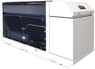 Urządzenia zostały wyposażone w podzespoły, które znacznie obniżają koszty ich eksploatacji. Agregaty chłodnicze gwarantują cichą pracę (ciśnienie akustyczne w odległości 10 m wynosi 42-45 dB(A)), dzięki wyposażeniu w sprężarki spiralne o niskim poziomie hałasu z osłoną dźwiękochłonną oraz ciche wentylatory EC. Zapewniają łatwy montaż i serwis typu Plug&Play: wstępna konfiguracja sterownika z możliwością adaptacji parametrów do konkretnej instalacji oraz łatwy dostęp do sterownika i podzespołów.