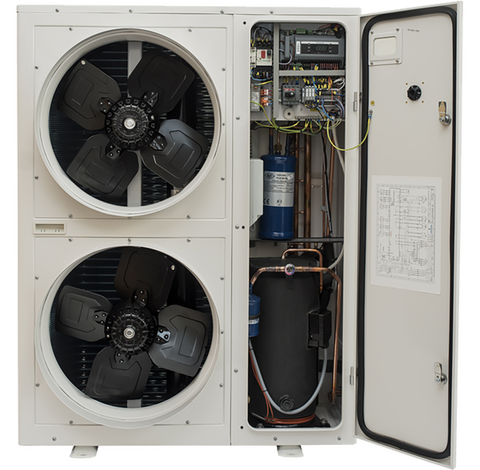 Standardowe wyposażenie agregatu Copeland EazyCool Indoor: sprężarka Copeland Scroll Digital, grzałka karteru, sterownik elektroniczny, wentylatory z regulacją prędkości obrotowej, zbiornik cieczy, rozłączniki zabezpieczające, filtr osuszacz i wziernik, separator oleju, oddzielacz cieczy.