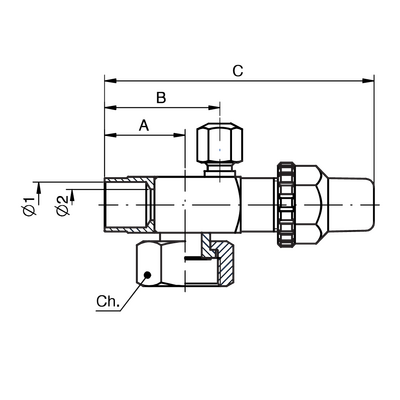 Przyłącze ciśnienieniowe z prawej strony, przyłącze By-Pass z lewej strony