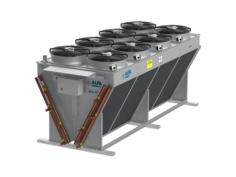Typoszereg przemysłowych dry coolerów typu V przeznaczonych do pracy w trudnych warunkach eksploatacyjnych w układach klimatyzacyjnych, instalacjach chłodniczych i innych zastosowań przemysłowych, takich jak chłodzenie wodą / glikolem lub chłodzenie swobodne (free-cooling). W aplikacjach przemysłowych dry-coolery Alfa-V są doskonałym rozwiązaniem do chłodzenia różnych cieczy procesowych w obiegach zamkniętych, np. w przemyśle spożywczym, energetycznym. Konstrukcja chłodnicy w kształcie litery V zapewnia wysoką wydajność w kompaktowej obudowie. Zakres wydajności nominalnej od 55,09 do 1 685,21 kW. Urządzenia certyfikowane Eurovent.