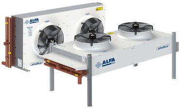 Dry coolery AlfaBlue Junior standardowo wyposażone są w wysokowydajne wentylatory AC lub energooszczędne EC o średnicach: 500 i 630 mm i czterech poziomach hałasu, zasilanie 230V/1~/50Hz, 400/3~/50Hz. Silniki z zewnętrznym rotorem, klasa ochrony IP 54 według DIN 40050. Zintegrowane termostyki zapewniają niezawodną ochronę przed przeciążeniem termicznym.