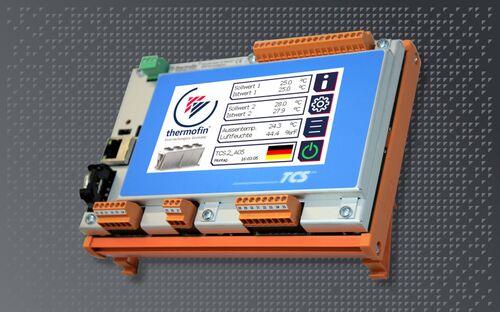 TCS (system sterowania thermofin®) to inteligentny sterownik przeznaczony do nowoczesnych napędów silników wentylatorów. Służy do monitorowania, sterowania i gromadzenia danych o parownikach, chłodnicach powietrza, dry coolerach i skraplaczach. Charakteryzuje się bardzo kompaktową konstrukcją i wieloma przydatnymi funkcjami programu, zapewniając optymalne warunki pracy. Maksymalną wydajność osiągana jest dzięki szybkiej reakcji na zmieniające się warunki otoczenia.