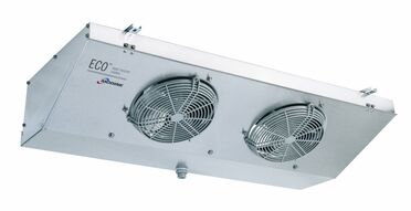 Typoszereg glikolowych chłodnic powietrza ECO Modine z wydmuchem jednostronnym, przeznaczonych do montażu w chłodniach o niewielkiej wysokości, do przechowywania świeżych lub mrożonych produktów. Modele podsufitowe w zakresie wydajności nominalnej od 0,28 do 2,58 kW, wyposażone w wentylatory o średnicy 250 mm, stopień ochrony IP44. Maksymalny zakres temperatur pracy do +50°C (opcjonalne wentylatory EC).