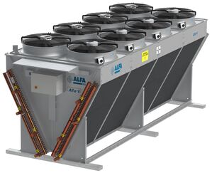 Gas coolery Alfa V standardowo wyposażone są w wysokowydajne wentylatory AC lub w energooszczędne EC o średnicach: 800, 910 i 1000 mm i różnych poziomach hałasu, zasilanie 400/3~/50Hz (AC), 380-480V/3~/50Hz (EC). Silniki z zewnętrznym rotorem, klasa ochrony IP 54 według DIN 40050. Silniki wentylatorów posiadają zintegrowane termostyki zapewniające niezawodną ochronę przed przeciążeniem termicznym.