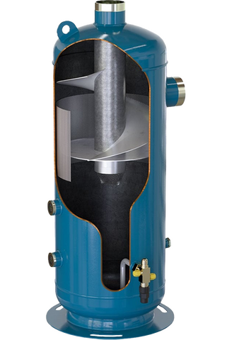 Typoszereg spiralnych odolejaczy GVN OS.HR, wyposażonych dodatkowo w zbiornik oleju. Separatory oleju dostępne są z przyłączami lutowanymi ODS w rozmiarach od 7/8” do 3 1/8” i pojemnością zbiornika od 12,2 l do 52,0 l. Dedykowane są dla czynników chłodniczych z grup HCFC i HFC oraz R410A i naturalnymi R290 (propan) i R717* (amoniak). Mogą pracować z maksymalnym ciśnieniem roboczym (PS1)- 33-45 bar. Spiralne separatory oleju przeznaczone są do współpracy ze sprężarkami spiralnymi i tłokowymi, nie zaleca się ich stosowania ze sprężarkami śrubowymi. Wyprodukowane zgodnie z dyrektywą CE 2014/68/EU [PED] dotyczącą urządzeń ciśnieniowych.