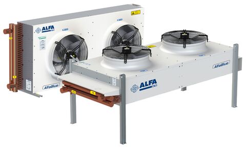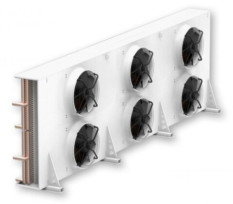 Innowacyjny blok lamelowy z profilowanych żeber aluminiowych oraz wewnętrznie karbowanych rur miedzianych umożliwia doskonałą wymianę ciepła przy minimalnym napełnieniu czynnikiem chłodniczym. Na zamówienie skraplacze mogą być wyposażone w niestandardowe bloki lamelowe oraz silniki wentylatorów.