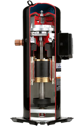 Sprężarki Copeland Scroll mają trzy razy mniej części ruchomych niż sprężarki tłokowe i są wyposażone w mechanizm zapewniający podatność spiral, co sprawia, że są szczególnie wytrzymałe i niezawodne w trudnych warunkach, również w przypadku zalania cieczą. Każda sprężarka ma przeprowadzony test: wysokonapięciowy, wysokociśnieniowy, szczelności (He), jest fabrycznie napełniona olejem i suchym powietrzem. Seria ZPV zawiera w pełni hermetyczną konstrukcję oraz wyposażona jest w trójfazowy silnik z regulacją inwerterową, chłodzony zasysanymi parami czynnika chłodniczego.