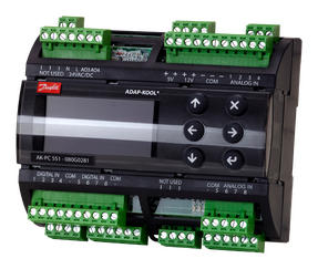 Typoszereg regulatorów wydajności Danfoss AK-PC do zastosowań w kompaktowych urządzeniach oraz rozległych instalacjach chłodniczych na czynniki z grupy HFC oraz CO2. Proste w obsłudze, wyposażone w intuicyjny, graficzny interfejs, sterowniki AK-PC, zapewniają efektywną regulację i niezawodną pracę nowoczesnych układów sterowania wyposażonych nawet w 22 sprężarki. Te inteligentne regulatory optymalizują ciśnienie ssania i skraplania w zależności od obciążenia cieplnego i temperatury otoczenia. Dodatkowe oszczędności energii i niskie koszty utrzymania można osiągnąć z wykorzystaniem regulacji obrotów sprężarek oraz wentylatorów skraplaczy, a także dzięki innym zaawansowanym rozwiązaniom, jak optymalizacja ciśnienia ssania, autodiagnostyka czy automatyczne wykrywanie usterek.