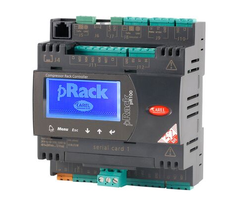 Typoszereg sterowników Carel pRACK pR100 przeznaczonych do kompleksowego zarządzania agregatami i zespołami sprężarkowymi. Seria dostępna w 5 rozmiarach w różnych wersjach wyposażenia z wbudowanym lub zewnętrznym terminalem PGD1 lub wbudowanym interfejsem RS485. Przyjazny interfejs użytkownika pozwala w prosty sposób na konfigurację sterownika, a bogaty typoszereg umożliwia elastyczne dopasowanie do potrzeb instalacji. Sterowniki pRACK pR100 wyposażone są w rozwiązania ułatwiające konfigurację dla różnych typów sprężarek (śrubowych, tłokowych, scroll). Mogą być sprzężone z systemami nadzoru z rodziny boss oraz systemami zdalnego sterowania, zapewniając optymalne monitorowanie w przypadku zastosowań w handlu detalicznym.
