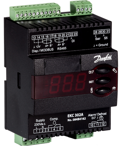 Typoszereg sterowników Danfoss EKC przeznaczonych do regulacji temperatury w układach z termostatycznymi zaworami rozprężnymi. Polecany w szczególności do zastosowań w komorach i meblach chłodniczych w supermarketach i innych obiektach handlowych. Sterownik może nadzorować: chłodzenie (sprężarka lub zawór elektromagnetyczny), odtajanie, pracę wentylatorów, funkcje alarmowe i oświetlenie.