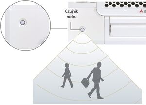 Czujnik ruchu - montowany w wymiennej części maskownicy, w jednym narożników panelu, wykrywa obecność osób w pomieszczeniu dzięki czemu klimatyzator dostosowuje temperaturę do bieżącego zapotrzebowania na chłód lub ciepło.