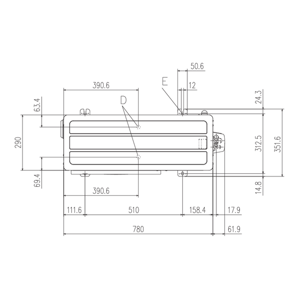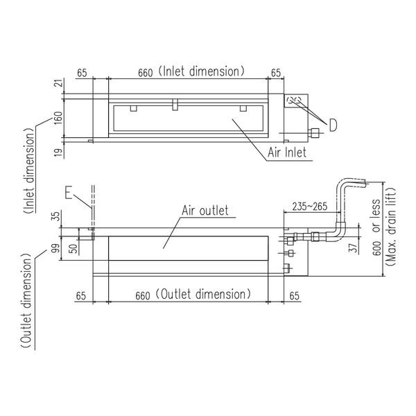 | D. Otwór przewodu skroplin | ⌀20 |