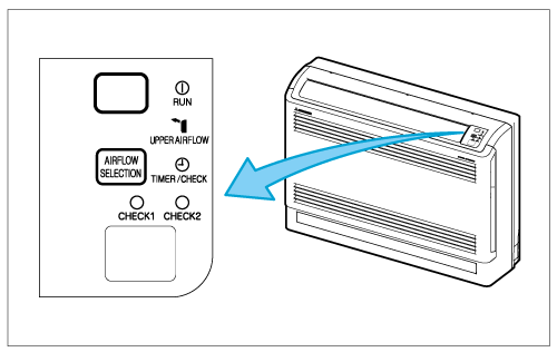 Jednoczesny nawiew góra/dół lub nawiew tylko góra, wybierany jest przyciskiem na panelu jednostki. Pozostałe funkcje dostępne są z poziomu sterownika przewodowego.