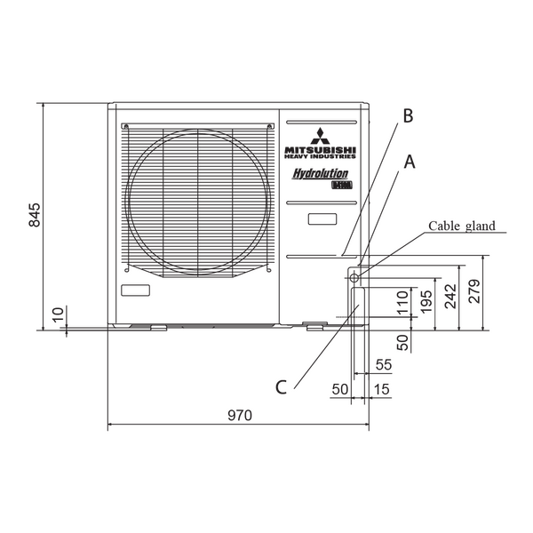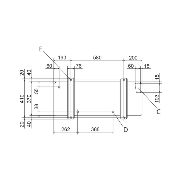 | C | Otwór do wyciągnięcia rury/kabla | |