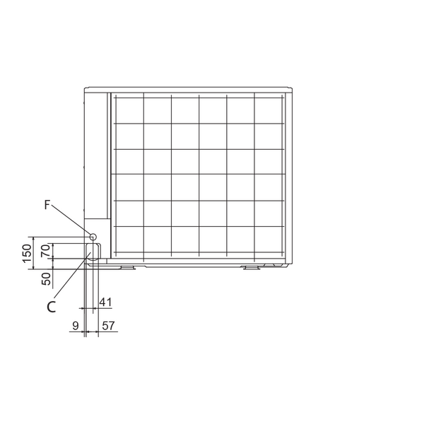 | B | Podłączenie zaworu serwisowego (strona cieczowa) | ⌀ 9,52 (3/8") Skręcane |
